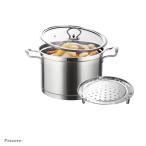 両手鍋 シチューポット 煮込み料理 ステンレス製 3層底 IH対応 オール熱源対応 シチューポート 半寸胴鍋 ガラス鍋蓋付 深型鍋 蒸し片付き (22cm)