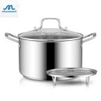 両手鍋 パスタ鍋 半寸胴 深型 ストックポット・ステンレススープポット ガラス鍋蓋付シルバー IH対応 クック ポット オール熱源対応