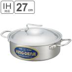 外輪鍋 両手鍋 浅型 IH対応 約5L 27cm 業務用 ニューキングデンジ ( ガス火対応 浅型鍋 目盛り付き )