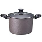 深型両手鍋 寸胴鍋 22cm ガス火 IH対応 ガラス蓋付 マーブルコート カレー シチューポット パスタポットブラック Marblack