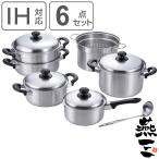 調理器具 6点セット 燕三 IHキッチンセットB 日本製 ( IH対応 ガス火対応 両手鍋 片手鍋 パスタ鍋 蒸し器 お玉付き 燕三条 ステンレス製 蓋付き 寸胴鍋 中かご付き 蒸し鍋 二段蒸し器 レードル付き 新生活 キッチンセット ) 【39ショップ】