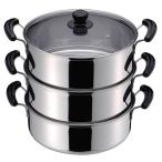蒸し器 三段 30cm 大容量 IH対応 ガス火対応 蒸し鍋 三段蒸し器 28センチ 両手鍋 3段蒸し器 ガラス蓋付き ステンレス鍋 蒸籠 調理鍋 オール熱源対応 2層/ 3層選択可能