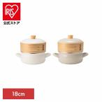 【在庫処分!早い者勝ち】 せいろ付きホーロー鍋 ガス火/IH火両対応 18cm ホワイト 蒸し器 ふた・シリコンシート付き 天然木・竹製 両手鍋 琺瑯 SER-18W.W