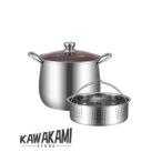 両手鍋 蒸し器 深型鍋 半寸胴 26cm ステンレス製 ガラス蓋付き