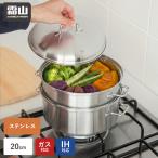 蒸し器 ステンレス スチーマー せいろ 鍋 20cm 深型 IH 直火 食洗機 蒸し料理 蒸しかご 2段 蓋付き フタ 両手鍋 ヘルシー 健康的 大容量 霜山 全国送料無料