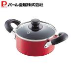 パール金属 両手鍋 16cm IH対応 フッ素加工 ガラス蓋付 レッド ジャストサイズ HB-4400