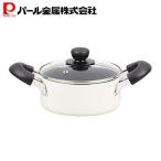 パール金属 両手鍋 16cm IH対応 ふっ素加工 ガラス蓋付 ホワイト ジャストサイズ HB-4403