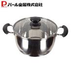 パール金属 両手鍋 20cm 深型 ガラス蓋付 IH対応 ステンレス製 ベジック HB-6514