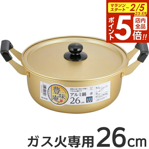 【2/5 全品ポイント5倍】鍋 豊味庵 アルミ鍋 26cm RA-9702 | 両手鍋 軽い 調理 なべ 大きめ 煮物 料理 ナベ 蓋付き