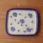 ポーランド食器 ポーリッシュポタリー スクエアプレート ケーキ皿 角皿 18cm みつばち 青 花柄 v173-a07 ボレスワヴィエツ陶器 Boleslawiec かわいい 東欧雑貨