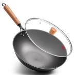 【大人気】中華鍋 フライパン 鉄フライパン 無塗装 IH対応 焦げ付き防止 軽量設計 蓋付き 24cm/28cm 鉄鍋 熱伝導抜群 省エネ ガス代節約 錆びない プロ仕様 家庭用 炒め鍋 匠手作り 蓋つき ガラス蓋 木製蓋