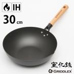 鉄 フライパン 炒め鍋 30cm GRIDDLEX(グリドレックス) 窒化鉄 IH対応 電磁調理器対応 ガス 直火対応 窒化加工 鉄製フライパン PFOAフリー 木柄