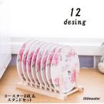 コースター 鍋敷き コップ置き 鍋置き 食器置き 8枚セット スタンド付き 収納ラック付き トレー トレイ 受け皿 ソーサー 丸 円形 ラウンド サー