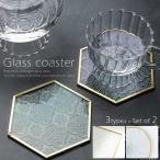 コースター ガラス おしゃれ 2枚セット 丸 四角形 六角形 レトロ アンティーク 幾何学 インテリア シンプル テーブルウェア GPT 4点迄メール便OK(gu1b128)
