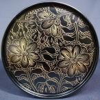 お盆 トレー おしゃれ 丸盆 黒 盛絵花かご 30cm 配膳盆 紀州漆器