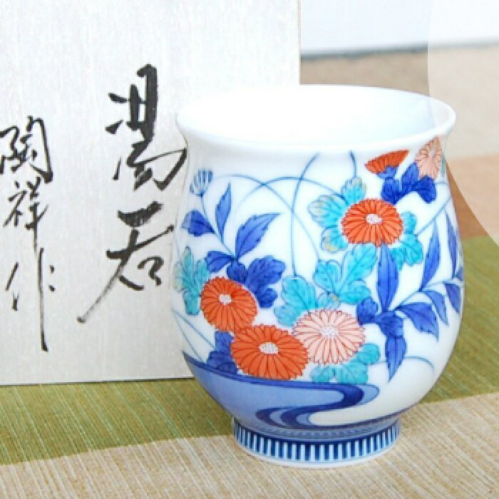有田焼 鍋島小菊流水紋 湯呑(木箱入) 伊万里の名窯「畑萬陶苑」による作品