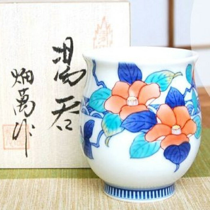 有田焼 鍋島椿紋 湯呑 (木箱入) 伊万里の名窯「畑萬陶苑」による作品