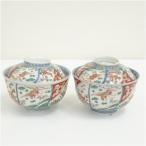 伊万里焼 染錦花鳥文蓋茶碗2客