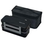 〔16個セット〕 ジャンボ2段ランチボックス/お弁当箱 〔1.3L ブラック〕 大型 男性向け 保冷バッグ付き 『モードライン』[21]