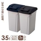 ごみ箱 ハンドル付分別ペール 2個セット 35L ブルー / ブラック | 分別 ダストボックス 屋外 ハンドル 35リットル 開けやすい スリム
