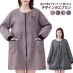 割烹着 エプロン 料理 保育士 秋 冬 ストライプ ゆったり おしゃれ ロング丈 あったか 防汚 前開き ポケット付き 防水 大きいサイズ 家事 長袖