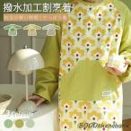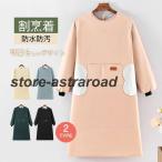 割烹着 かっぽう着 エプロン スモック風 レディース 保育士 作業服 袖付き 長袖 ポケット 料理 キッチン ガーデニング 防水 撥水 ワークエプロン