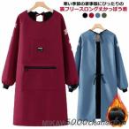 裏起毛で冬もあったか 割烹着 撥水 防水 長袖エプロン 裏フリース かっぽう着 秋 冬 長袖 袖口リブ ロング丈 エプロン 冬 あたたかい 袖カバー