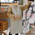 保護服 着丈100cm メンズ 長袖エプロン デニム割烹着 割烹着 前掛け レディース 袖カバー 腕カバー 冬用エプロン ロング スモック 家庭用 厨