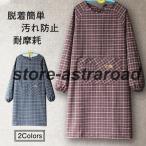 おしゃれ かっぽうぎ 柔らかい 可愛い 長袖 かっぽう着 レディース 汚れ防止 チェック柄 割烹着 前開き 袖付きエプロン ポケット付き 通気性 可愛