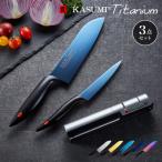 スミカマ 日本製 霞 KASUMI チタニウム 包丁セット 三徳包丁 ペティナイフ 牛刀 シャープナー 4点セット 三徳18cm ペティ12cm 牛刀20cm 砥石