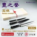 高級名入れ包丁豊之誉 御結婚祝い特別開運ギフト 慶(よろこび)セット「宝珠」/三徳包丁180mm、ペティ130mm、刺身包丁 240mm(左利き用)|かね萬