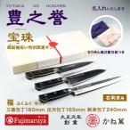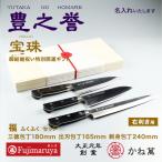 高級名入れ包丁豊之誉 御結婚祝い特別開運ギフト 福(ふくふく)セット「宝珠」/三徳包丁180mm、出刃包丁165mm、刺身包丁 240mm(左利き用)|かね萬