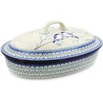【並行輸入品】Polish Pottery Baker Oval Large Blue Berries
