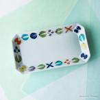 徳永遊心窯 色絵花繋ぎ 隅切長角皿(高台有)