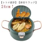 【SS期間50%OFF!!】天婦羅鍋 揚げ物鍋 ガス火/IH対応 温度計付き24cm 揚げ鍋 両手鍋 小さい 小型 丸型 鉄 製 おしゃれ 天ぷら 揚げ物 調理器具 天ぷら用鍋 フライヤー なべ お鍋 アミ付き 蓋付き 温度計 天婦羅鍋 コンパクト フライ シンプル かわい