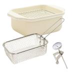 富士ホーロー 角型天ぷら鍋 ワイド ホワイト + ポコフリット 角型揚げざる セット TP-22K.W RG-0561 温度計付き 揚げ網 バット付き IH対応 直火(ガス火)対応 FUJIHORO ギフト・のし可