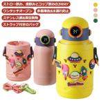 水筒 子供 キッズ 直飲み ストロー ワンタッチ 2way コップ ステンレス 保冷 保温 カバー付き ショルダー ひも 洗いやすい 広口 遠足