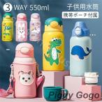 水筒 子ども キッズ 550ml 3WAY ステンレスボトル コップ付き/直飲み/ストロー ロック付き 可愛い 保温水筒 子供 キッズ 小学生 入園式 通学 レゼント ギフト