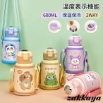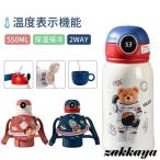 水筒 キッズ 温度表示 ストロー カバー付き こども 保冷 保温 ポーチ付き コップ付 ステンレスボトル 子供 女の子 男の子 550ml 軽量 かわいい スポーツ 運動会