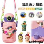水筒 キッズ 子供用水筒 温度表示 ストロー カバー付き 大容量 500ml 直飲み コップ飲み 3WAY ステンレス マイボトル カップ付き 超軽量
