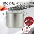 鍋 寸胴鍋 24 ストックポット 24cm ガラス蓋付 エコーズステンレス | 24センチ IH ガス火 オール熱源 直火 ih 両手なべ ふた フタ 深型 なべ 両