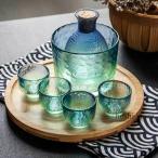 冷酒器セット ガラス 6点セット ガラス酒器セット ゴールドライン 酒燗器 酒瓶 日本酒 洋酒 盃 ブルー 透明 グラス カラフェ 新発売! 敬老の日 おしゃれ