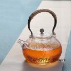 耐熱ガラス ティーポット 手作り 急須 ホウケイ酸ガラス製ポット やかん 銅製 持ち手 紅茶ポット フルーツティー 花茶 工芸茶 ジャンピング 直火対応