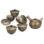 九谷焼 蓋付茶器(急須&湯呑み5個セット)青粒金唐草K9-849