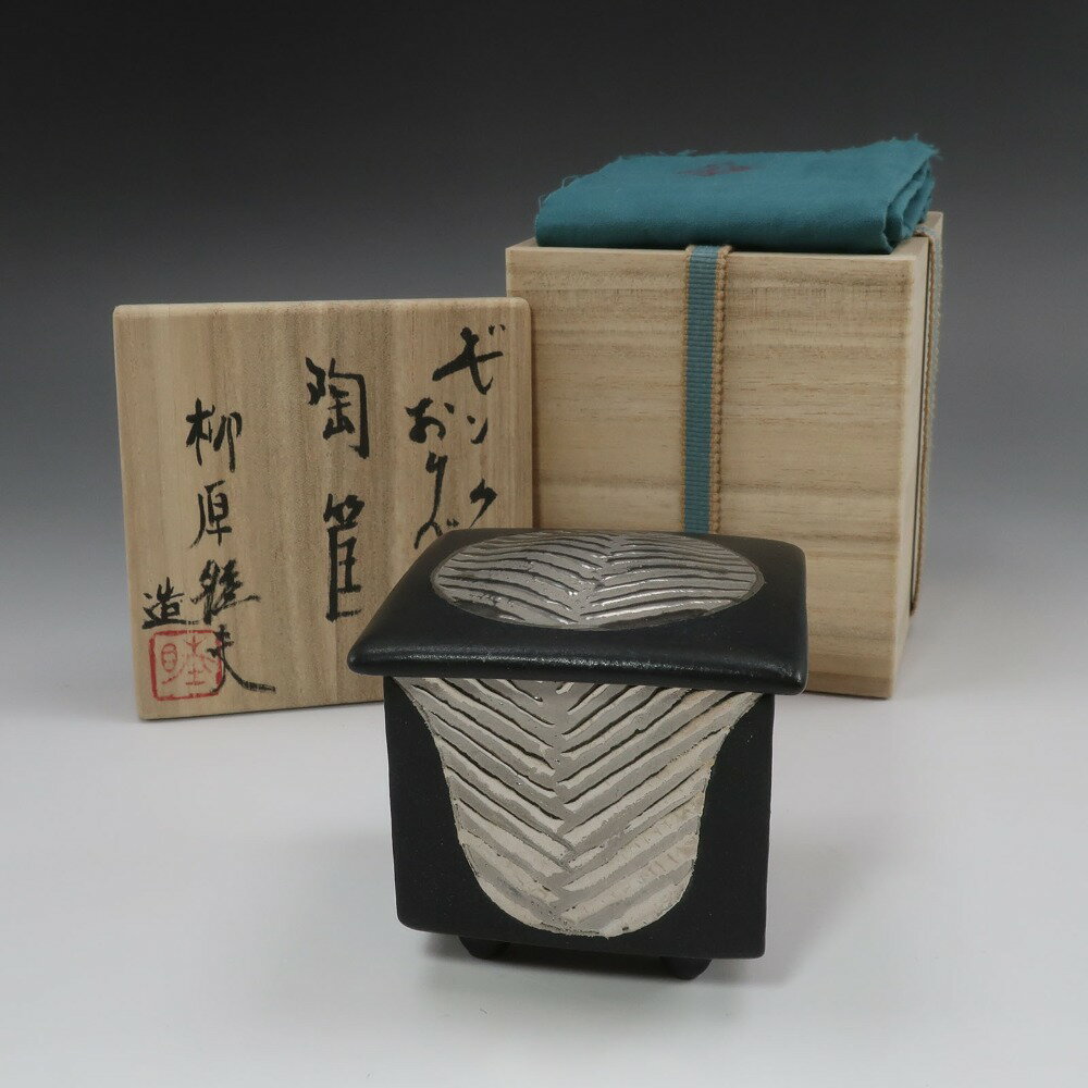 【スーパーセール10%OFF対象】柳原睦夫 作 【 ギンクロ おりべ 陶筐 】 茶道具 陶磁器 Made by Yanagihara Mutsuo [Silver Oribe Ceramic Box] _【中古】Aランク
