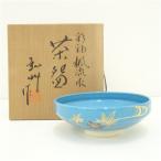 京焼 弘艸造 彩釉楓流水茶碗(共箱)