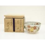 茶道具 抹茶茶碗色絵 紅葉京焼 中村清彩作、桐共箱 新品。