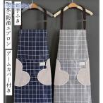 エプロン腕カバー 男女兼用 北欧風 撥水 防水 防油 お手ふき 飲食店 おしゃれ かわいいシンプル レディース メンズ 割烹着 首かけ ポケット付き