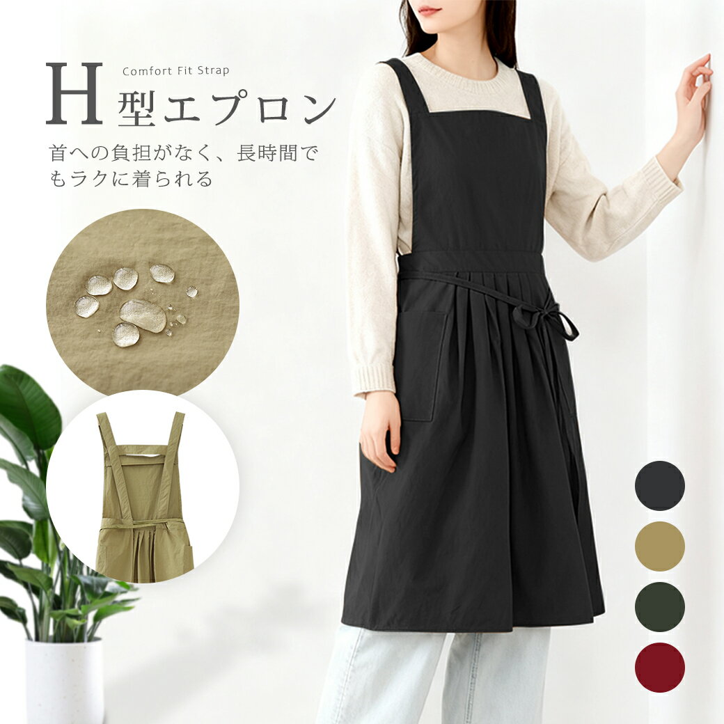 60%OFFの1592円! エプロン 北欧 おしゃれ レディース H型 可愛い ドレスエプロン お尻が隠れる エプロンドレス おしり隠れる ワンピース 大きめ 被るだけ カフェ 撥水 無地 黒 シンプル 保育士 プレゼント