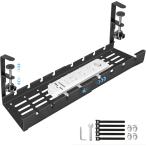 ケーブルトレー 配線整理 収納ボックス - デスク下 伸縮 クランプ式 電源タップ コンセント コード ブラック 穴あけ不要